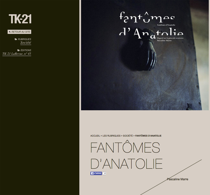 La belle et passionnante revue d’art TK21 présente le projet Fantômes d’Anatolie avec des textes du livre. A retrouver ici : http://www.tk-21.com/Fantomes-d-Anatolie