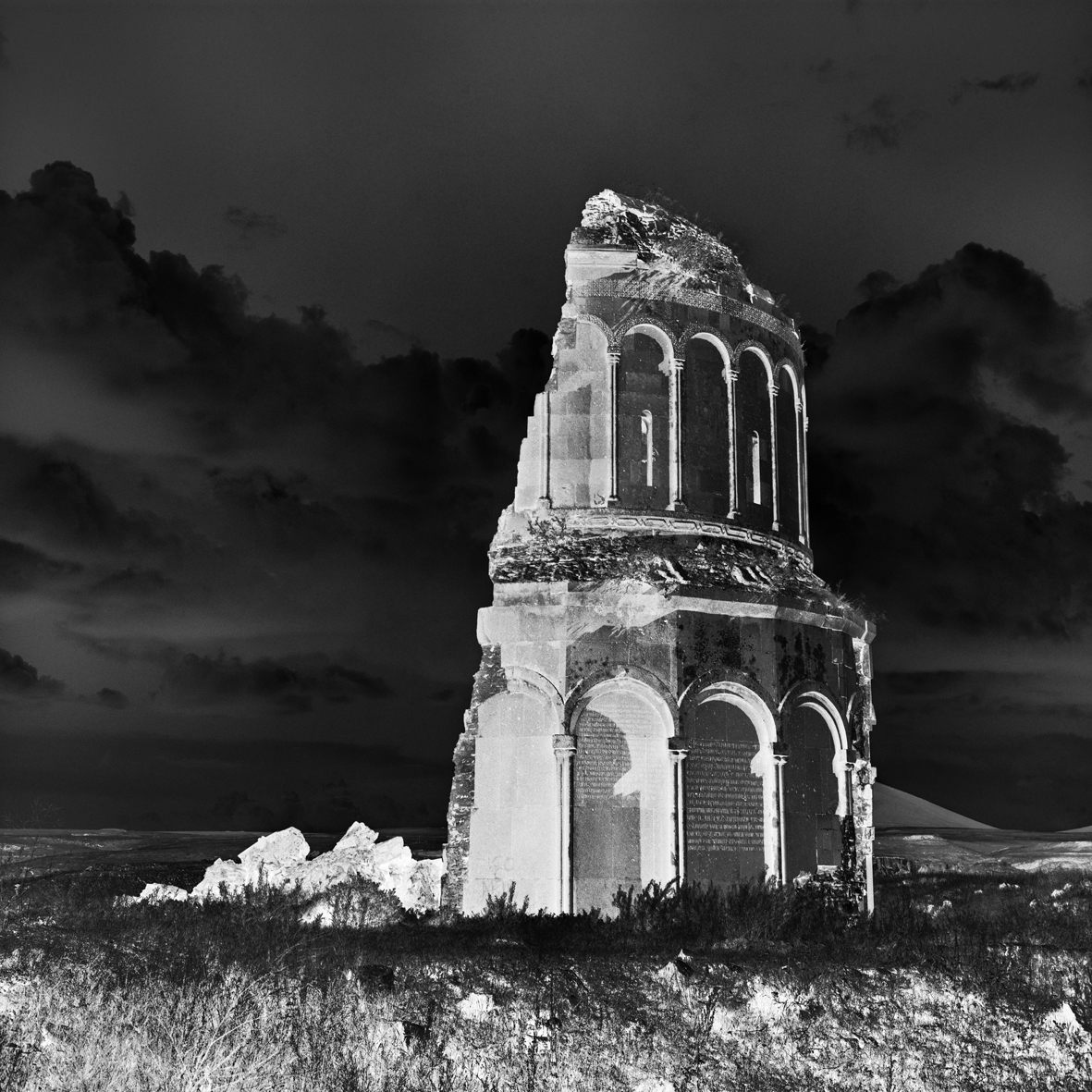 La galerie Binôme exposera le travail "Fantômes d’Anatolie" du 11 juin au 25 juillet, 19 rue Charlemagne, Paris 4. Pour cette exposition, nous avons décidé de travailler sur une présentation plus graphique du projet, avec des images inédites où le négatif vient en regard de la série. L’image inversée fait apparaître d’autres signes, effacés par l’histoire et le temps, révélant son caractère vivant et son omniprésence.