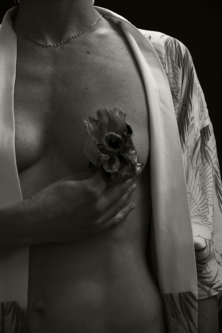 Une mise à nu alors s’impose, afin de puiser en soi la force nécessaire pour avancer sur un chemin non tracé. Et dans cette entreprise, la photographie m’est un alié salvateur, un moyen d’explorer à tâtons ce chemin, de l’appréhender pour mieux m’en saisir, transformer les fêlures et les blessures en jeux, m’incarner en oiseau qui peine à prendre son envol, en amazonne légendaire ou en matadore, et me donner la possibilité de me relever.